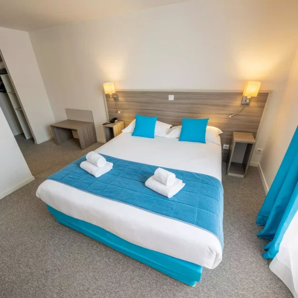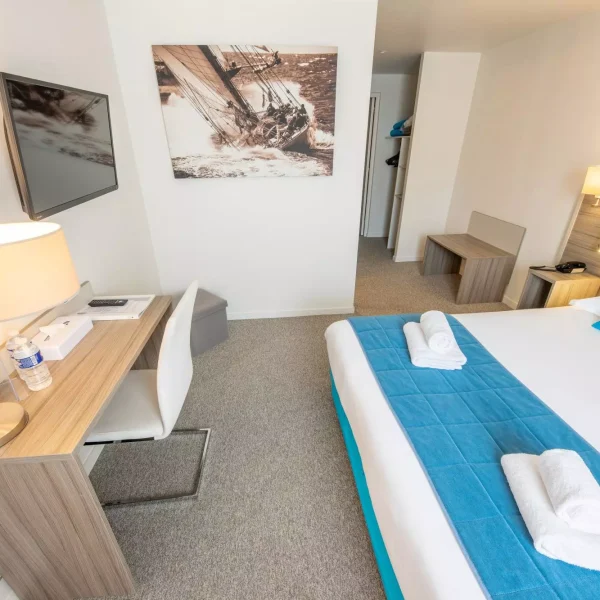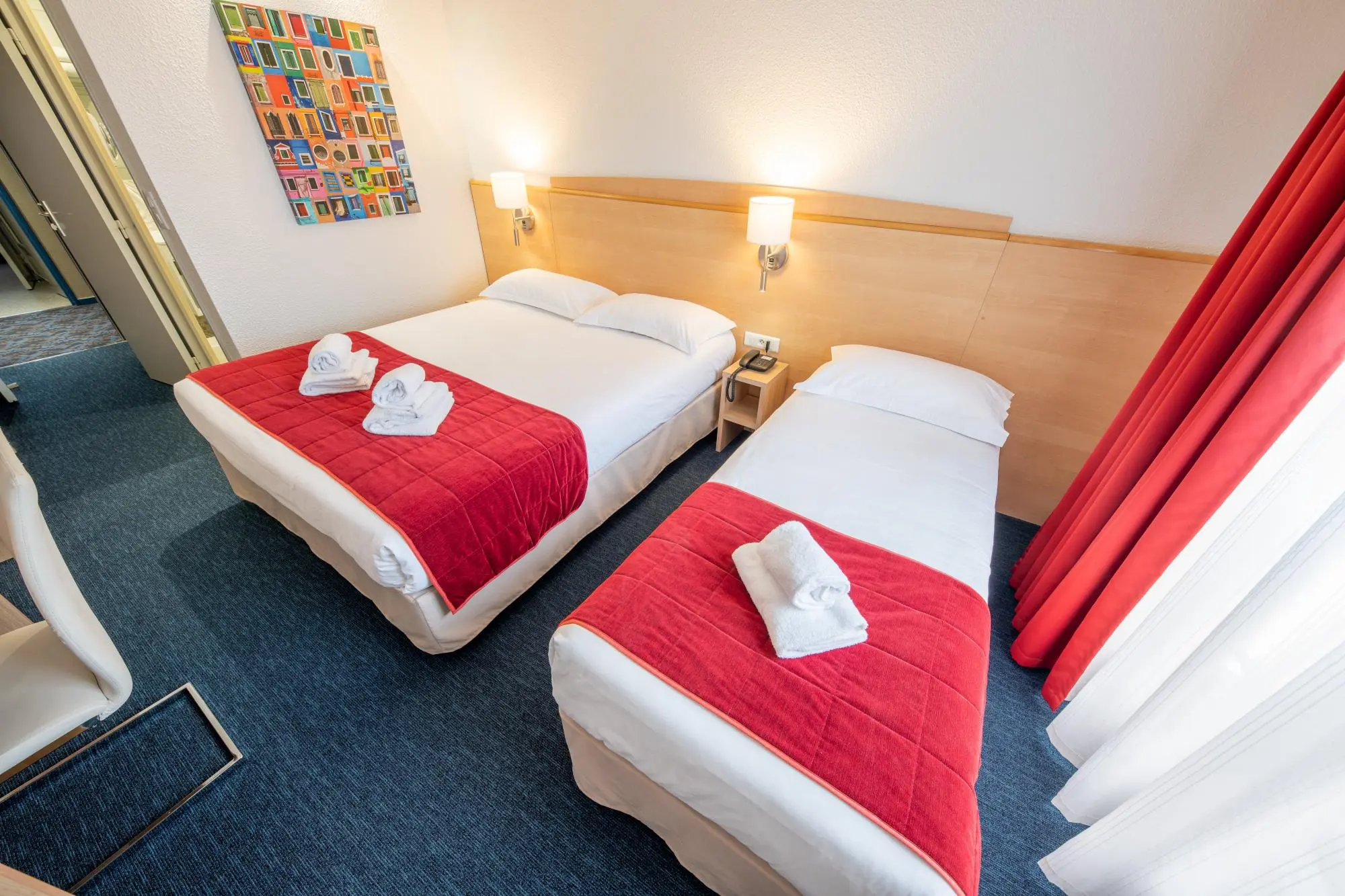 Chambre Confort avec un lit de 160 x 200cm et de 90 x 200cm pour trois personnes.