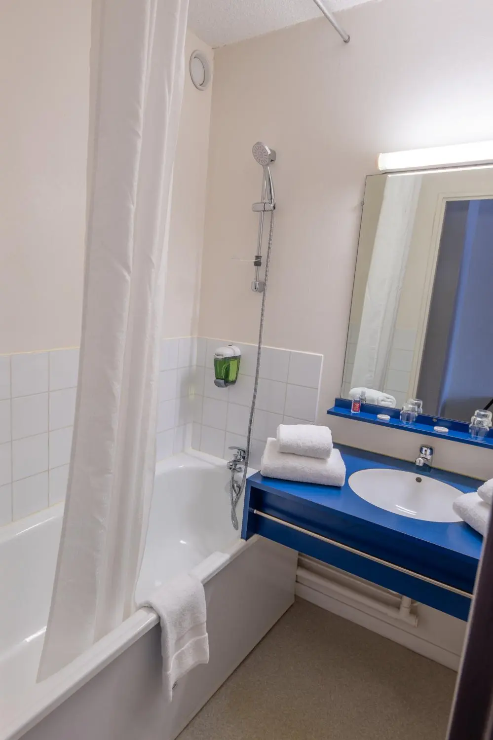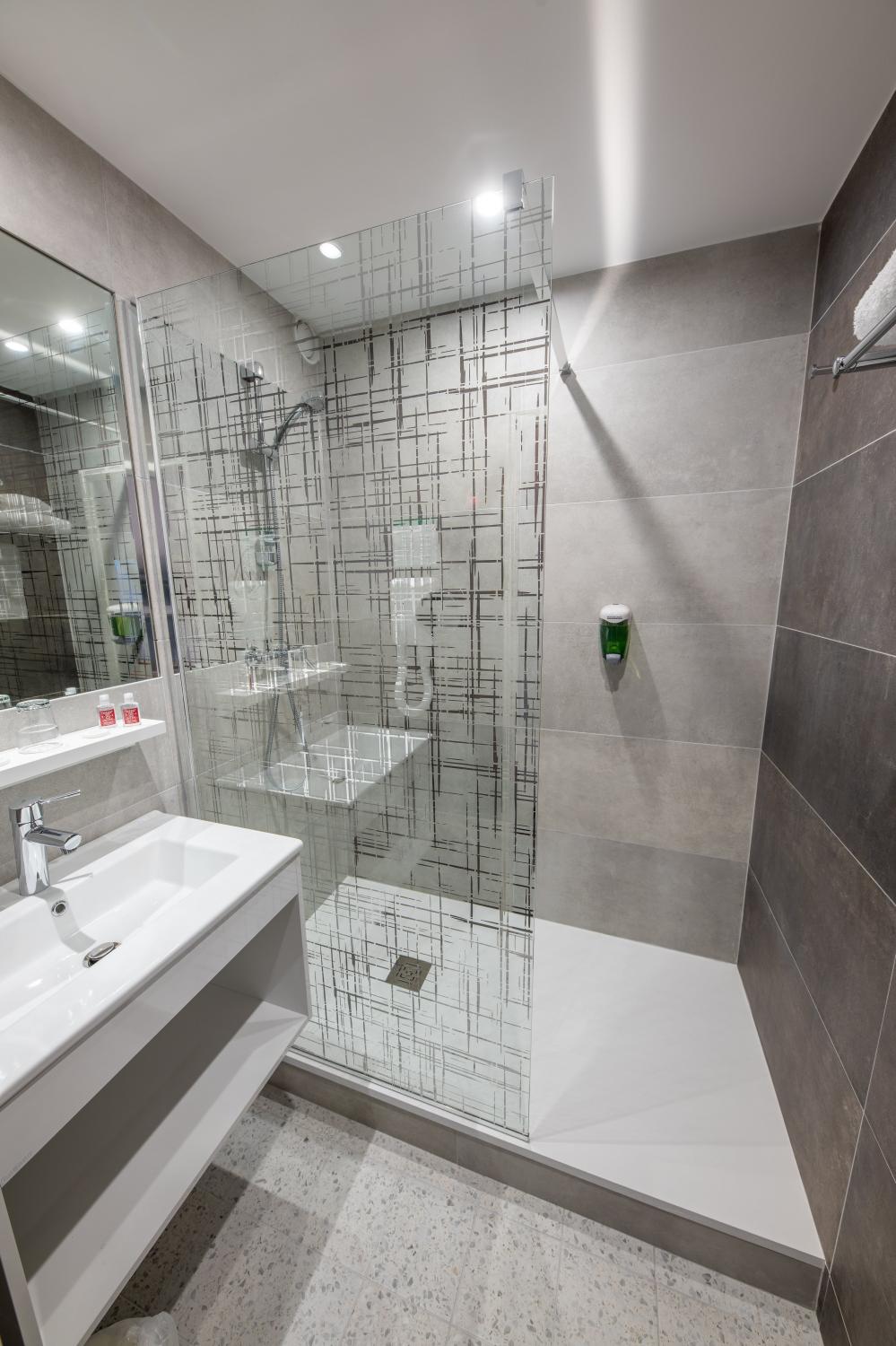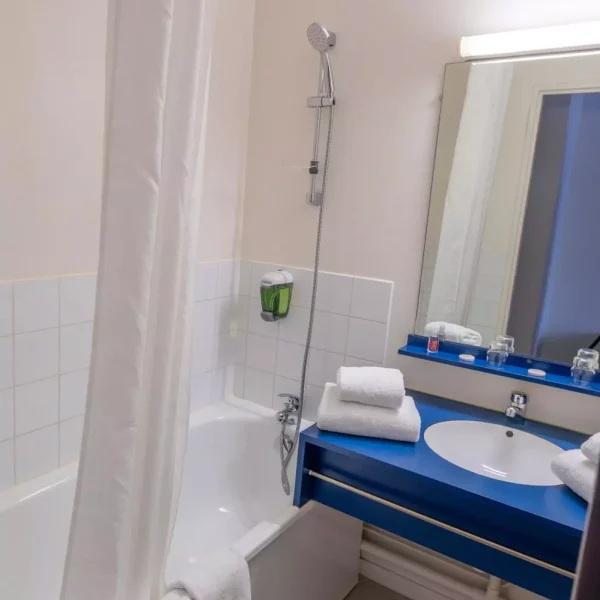 Équipée d’une salle de bain avec douche à l’italienne ou baignoire sous réserve de disponibilité.